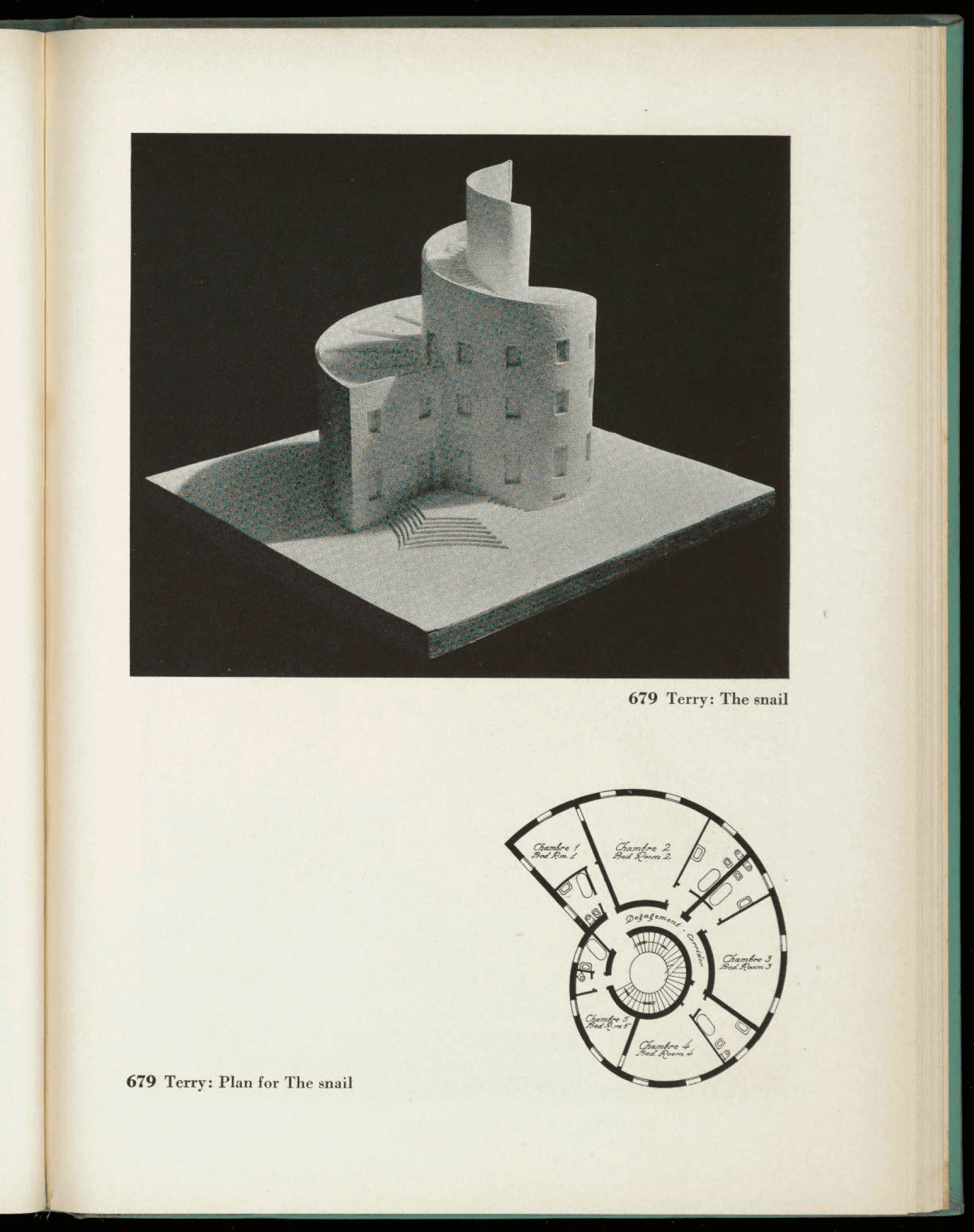 Emilio Terry, model and plan of The Snail. Photo: MoMA publication for the Fantastic Art, Dada, and Surrealism exhibition, p. 202.